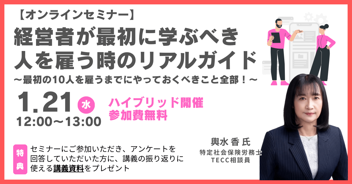 今回は、4月1日から段階的に施行される育児・介護休業法について、法改正の概要、改正内容、実務対応のポイントをわかりやすく解説いたします。その他、企業の人事労務担当者の方に向けて、自社の規模・実情を踏まえた就業規則作成のポイントについて、実践的な知識をお伝えします。
