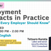 This seminar offers a concise introduction to Japanese labor laws for international corporations considering operations in Japan through a local branch or subsidiary, foreign-affiliated companies and entrepreneurs already operating in Japan.